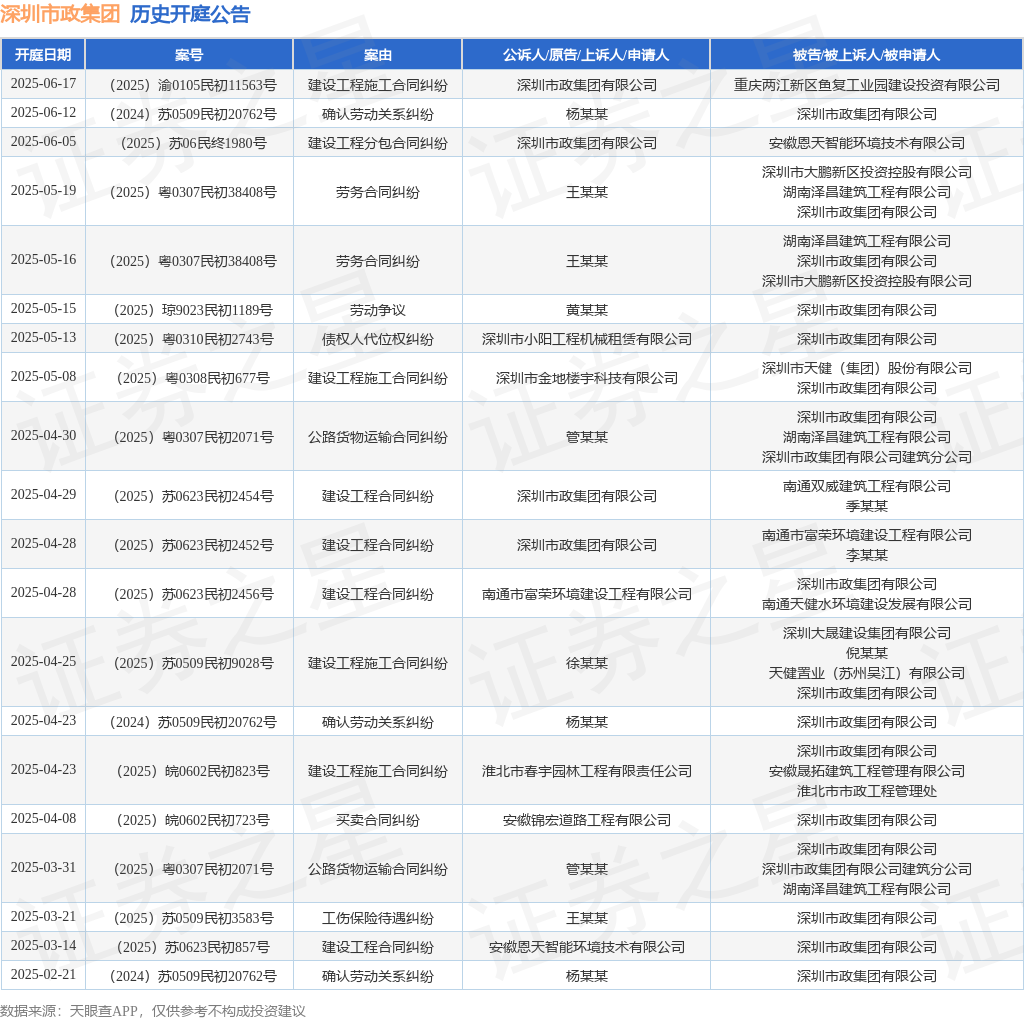 本站消息,根据天眼查APP显示,近日公布了一则深圳市政集团有限公司作为被告/被上诉人的开庭公告,详细内容如下: